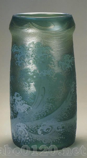 この花瓶は,北斎の版画につよく影響され,同時にまた熟達したエッチングの技術を駆使することによって(この装飾は6段階にわたってエッチングされている)モチーフの芸術的造形を生んだものであり,それ故にこの花瓶はベッケルトの傑作といえる。また1909年から10年にかけてウィーンでひらかれたオーストリア美術・工芸展のためにつくられた作品で,そこでブルノのモラヴィア・ギャラリーのコレクションとして購入された。出所:『ボヘミアのアールヌーヴォーグラス展』Bohemian Art