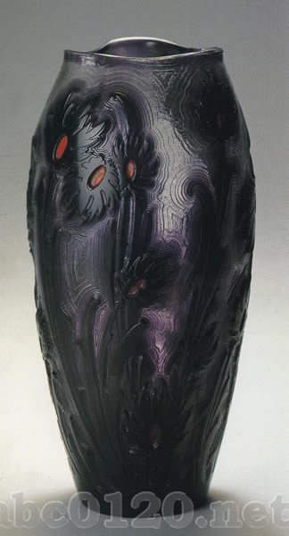 素晴らしいエッチング装飾があるベッケルトの有名な作品。1909年から10年にかけてウィーンでひらかれたオーストリア美術・工芸展のためにつくられた作品群の一つ。出所:『ボヘミアのアールヌーヴォーグラス展』Bohemian Art