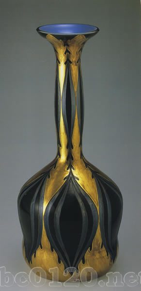 ボレックとしては形態の上で異質な興味深い作例。この花瓶は1913年から14年にかけてウィーンでひらかれたオーストリア美術・工芸展において購入された。同種の他の作品が1914年のケルンでのドイツ工作連盟展で展示された。出所:『ボヘミアのアールヌーヴォーグラス展』Bohemian Art