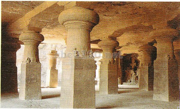 ムンバイ港の北北東約10kmにあるエレファンタ島は、16世紀にポルトガル人が、海岸でゾウの彫刻を見つけたことから命名された。高さ200mの岩山に、 7世紀頃につくられた5つのヒンドゥー教石窟寺院がある。見どころは、シヴァ神を祀る第1窟で、東・北・西の三方に入口があり、どこから入っても三面シヴァ神像に迎えられる。 7世紀につくられた胸像ながら高さ5.5mの巨像で、圧倒的な迫力である。ほかに、シヴァ神関係の大きな浮き彫りが8面ある。方形祀堂の入口には、1対の巨大な守門神が彫られている。海岸で発見されたゾウの彫刻は、1814年に破壊された.のちにイギリス人によって復元されたものが、ムンバイのアルバート博物館にある。出所:世界遺産の旅