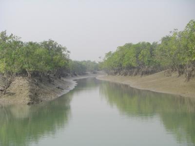 スンダルバンス国立公園は、ベンガル湾の奥に広がる世界最大のデルタ地帯の中にある ガンジス川とブラマプトラ川がはるかヒマラヤ山脈からは砂を運び、河口に堆積地を形成した。沿岸に広がるマングローブは、サイクロンに対する自然の防波堤の役割も果たしている。