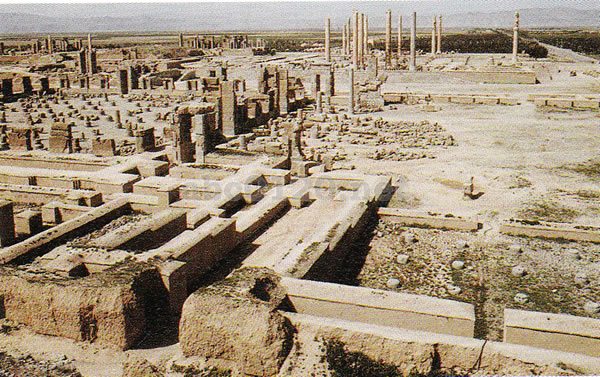 ペルセポリスは、石を積み上げた大基壇の上につくられており、入口には111段の階段が設けられている。クセルクセスの門(万国の間)を入ると、人面有翼獣身像が迎えてくれる。右手の前庭奥には、ここで最大の宮殿アバダナ(謁見の間)がある.かつては四隅に塔が立ち、広間に36本、前廊と左右の側廊に36本、計72本の円柱が立っていた。今は十数本が残っているのみ.比較的保存状態がよい、アバダナの東にある階段のレリーフは、属国の使節を描いたもので芸術的価値も高い。 アバダナの東には属国の朝貢品を受け取る百柱の間が、南には王や妃の宮殿、宝庫などが配置されていた。 しかし、紀元前330年、アレクサンドロス大王の侵略による火災で炎上し、往時の姿はほとんどとどめていない。出所:世界遺産の旅