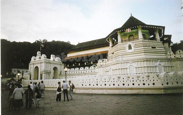 キャンディのいちばんの見どころは、仏陀の糸切り歯が祀られているダラダ・マリガワ寺(仏歯寺).キャンディ湖北岸のほとりにたたずむこの建物は、スリランカを代表する仏教寺院である。赤味のある黄色の壁と茶色の屋根をもつ八角堂はシンハラ建築様式の美を今に伝えている。 敬虔な仏教徒が多いスリランカでは、仏歯は最も聖なる遺物として、王権の象徴とされてきた.シンハラ王家に受け継がれた仏歯は遷都とともに各地を転々とし、最後にこの仏歯寺に落ち着いた。寺院は2度建て替えられ、今日残っている建物は、第169代ナーランドランンハ王が建立したものである。現在もスリランカの仏教徒たちの信仰の中心であり、熱心な参拝客で絶えず賑わいを見せている.毎年7~8月に開催されるペラペラ祭りでの、100頭を超すゾウの行進は壮観である。寺院北側の王宮跡は、現在は考古学博物館となっており、王妃宮殿跡は国立博物館である。出所:世界遺産の旅