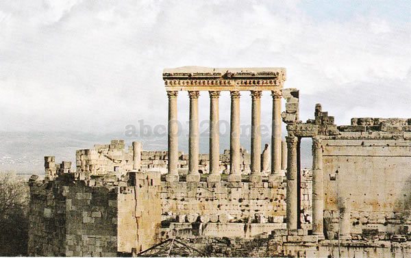 ベカー高原の中央に位置し、古代から肥沃な土地として知られていたバールベックには、最大にして優美なローマ神殿が築かれた この巨大な聖地の完成には、約200年の歳月を要した。最初に建てられたのは、ヘレニズム期の建築の代表であるジュピター神殿。前門、六角形の前庭、大庭園、大神殿からなり、250年頃完成した。その巨大さは、残されている高さ20m、直径2.2mの列柱から容易に想像できる。