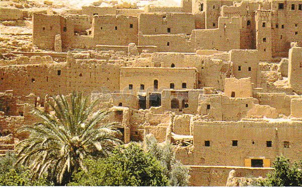 アトラス山脈を越えたモロッコの南半分は、いわゆるアラブ・イスラムの世界とはまったく異なる。次々に変わる支配勢力に押されるように、内陸部に移動じていったベルベル人たちの世界である。サハラ砂漠を控えてオアシスが点在し、オアシスの中の村には、日干しレンガでつくられた家が並ぶ。村の多くは、家屋がびっしりと密集して侵入者を阻む迷路をなしている。なかには、とりわけ外敵を意識した堅固な造りの村があり、村全体がひとつのカスバ(城塞)の様を呈する。こういう要塞化した村を「クサル」という。その代表格がアイト・ベン・ハッドゥだ。