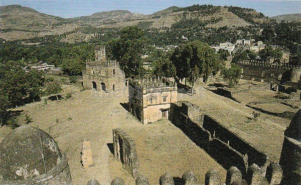 エチオピア北部の中都市ゴンダールは、1632~1784年まで、エチオピア帝国の都だった。町中や郊外には、王宮や聖堂などの石造遺構が残っている。なかでも重要なのが、ファジル・ゲビと呼ばれるエチオピア歴代皇帝の王宮群である。エチオピア帝国の黄全期をつくり、人びとに人気を博すファシラダス帝(在位1632~1682年)以降の、暦代の皇帝が住てた宮殿や文書館、聖堂などが残る。7つのおもな建造物はすべて石造りで、アーチを描く窓や入口、バルコニーの周りの飾り、円蓋をいただく塔などが特徴的。これらは、ポルトガル、イスラム、バロックの言様式が混交したゴンダール様式である。聖堂の壁にはエチオピア帝国の栄華が描かれている。