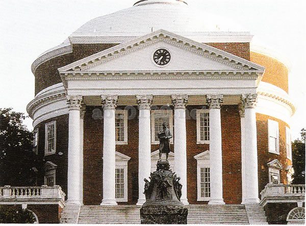 アメリカ合衆国独立宣言の起草者で、のちに第3代大統領となったトマス・ジェファソンは、建築家としても優れていた。彼の代表的な建築物が、モンティセロの自邸と、1825年に彼が創立したヴァージニア大学の建造物群である。