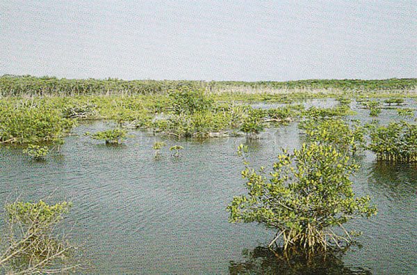 エヴァーグレーズ国立公園は、フロリダ半島の南に広がる広大な湿地帯である、この湿地帯は、オキチョビー湖を出てメキシコ湾へ注ぐ、極めて流速の遅い川を形成している。湿地帯の幅は約80km、長さ約190kmもありながら、水深は30cmぼとしかない。メキシコ湾近くでは、広大なマングローブ林をつくっている。