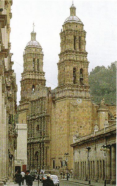 サカテカス州はメキシコ高原にあり、サボテンが生い繁る大地が広がる。高原北端に位置する州部サカテカスは、1546年にスペイン人が発見した銀鉱脈によって発展レシルバー・ラッシュで沸いた町である。同時に現在のアメリカ合衆国南部にまで広がる、メキシコでのカトリック布教活動の基地でもあった。20世紀初めに銀鉱山は衰退したが、バロック様式の聖堂や民間建築が碁盤の目のように走る石畳の小道沿いに建ち並ぶ。噴水のある広場もあちこちにあり、メキシコの小ローマ」と呼ばれ、ピンク色の石の建物が多いことから、「ピンク・シティ」とも呼ばれる。