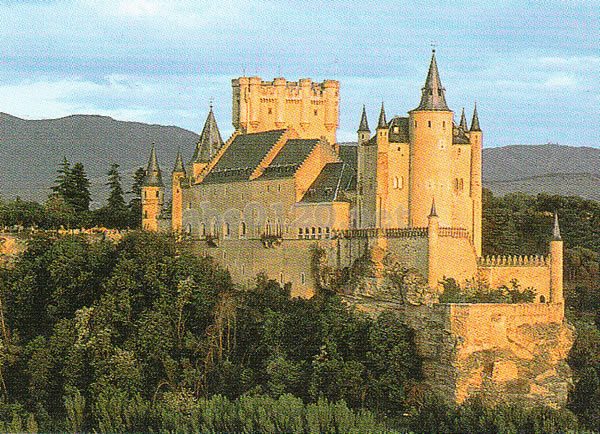 水道橋と並ぶ代表的な建造物が、スペイン・ゴシック様式で16世紀に建造の大聖堂と、美しいアルカサル(セゴビア城)だ。アルカサルは、歴代カスティーリャ王の居城で、イザベル女王が戴冠したのもこの城である。現在の建物は、19世紀の再建。この町を遠くから見ると巨大船に見える。城が船首、大聖堂マスト、水道橋が舵である。出所:世界遺産の旅