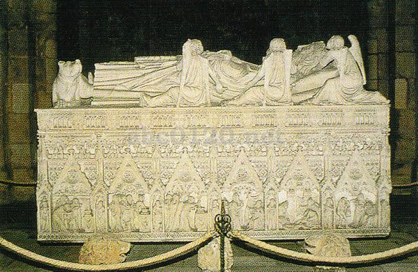 アルコバッサの町とサンタ・マリア修道院の起源は、12世紀初頭のポルトガル建国までさかのぼる。初代の王となったアルフォンソ1世が、建国に協力してもらった労に報いて、シトー派修道会に寄進したのである。歴代の王に保護され、最盛期には1000人近くの修道士が暮らしていたという。ちょうどロマネスクからゴシックへの過渡期の建築物で、禁欲・清貧・勤勉を旨とするシトー派の精神を反映して、内部は簡素そのものだ。教会の奥に、一対の石棺が安置されている.驚嘆するほど繊細で美しい装飾彫刻は、ポルトガル・ゴシックの最高傑作といわれる。この石棺には、14世紀の国王ペドロ1世と侍女イネスの悲恋物語がある。地上では結ばれ得なかったふたりの棺は今、足を向け合って並べられている。最後の審判の日、ふたりがよみがえったとき、すぐに顔を見合わすことができるように。出所:世界遺産の旅