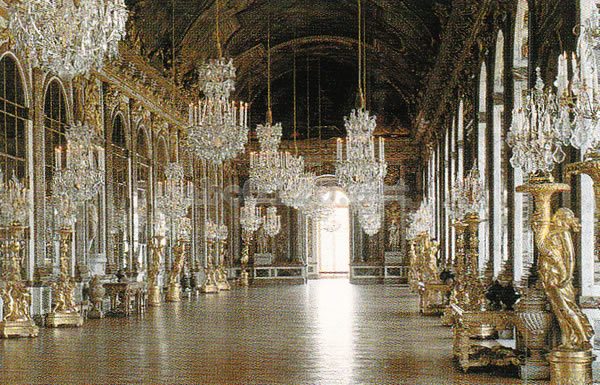 大きな窓から差し込む光が、天井から下げられた幾多のシャンデリアと、黄金の燭台、そして壁に組み込まれた500枚以上の鏡に反射する。そのまばゆさは、一瞬息をのむ美しき 豪華絢爛なヴェルサイユ宮殿の中でも、ひときわ目を奪われる。この「鏡の間」は、1919年にヴェルサイユ条約が調印された場所としても有名である。