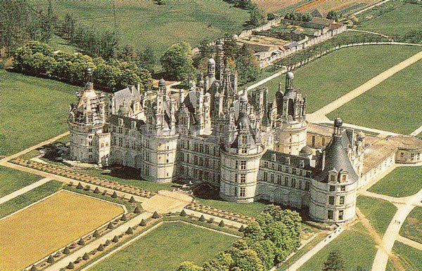 「フランスの庭」といわれるロワール川流域のこの地方は、フランスで最も豊穣な地である。このロワールの数ある城の中でも、ひときわ美しく、壮大なスケールをもつシャンボール状は、フォンテンブロー宮殿を改築したフランソワ1世によって築かれた。この地に城を設けたのは、近くに愛人トロイ伯爵夫人が住んでいたから、という逸話が残っている。1519年に着工した城は息子のアンリ2世に引き継がれたが、彼も建設半ばでこの世をより、 さらに時を経て1685年ルイ14世の時代に完成した。