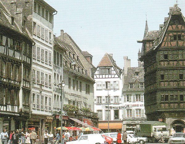 街道の町という意味をもつ名のとおり、ドイツとの国境に近いヨーロッパの中央に位置する。道路、鉄道、河川の交通の交差する通商の要所で、「ヨーロッパの十字路」と呼ばれている。古くから交易で栄えた町だが、フランスとドイツの領有争いが幾度もこの地で繰り返され、波瀾の時代をくぐり抜けてきた。この歴史は今も生活に根づいている。言葉や食生活、建築などにドイツの影響が見てとれ、独自の文化を築いてきた。