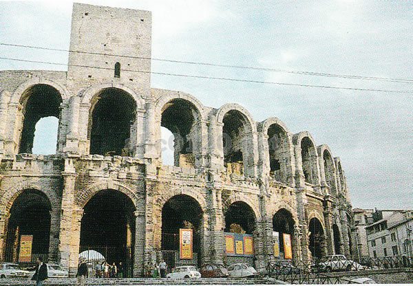 アルルは、ローマ時代に首府がおかれ、中世には宗教の中心地として発展した。その歴史は今も町の至る所で見受けられる。ローマ時代の最大のモニュメントは、円形闘技場と古代劇場である。ローマ植民地時代の1世紀末につくられたとされる闘技場は、 2層で60のアーチが周囲を囲み、 2万5000人以上収容できる。中世には城塞に改造されたが、19世紀初めに闘技場として再建された。紀元前27~前25年頃につくられた古代劇場は、受難の歴史を歩んだ。5世紀には教会建築の石材として切り出され、 9世紀に要塞に改築、そして地中に埋もれてしまい、その上に家が建てられてしまった。19世紀に55年かけて発掘されたが、舞台の装飾壁は見るかげもなく、大理石の柱がなっているだけだ。