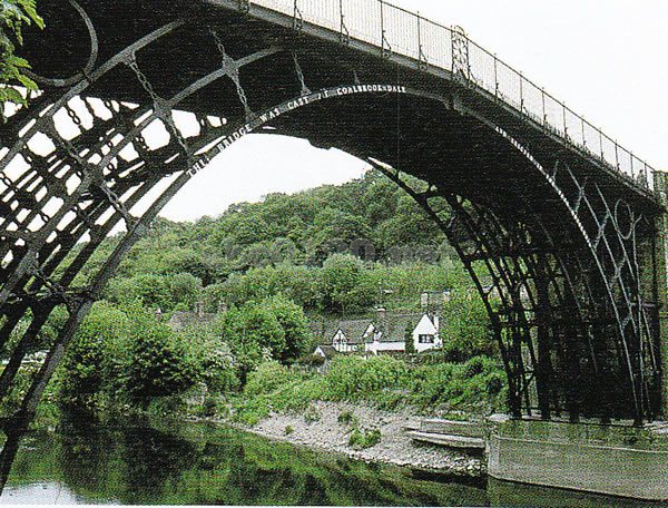 1779年、イングランドの中央部を流れるセヴァーン川に架けられた世界初の鉄橋(アイアンブリッジ)。今も完全な姿でこの谷に残っている。鉄橋建築法が開発されていなかったため、木材建築法を用いた。そのためボルトを使わない世界で唯一の珍しい鉄橋となっている。ここには、その当時の溶鉱炉や工場が、博物館として現在も残されており、鉱石を運んだトロッコなどが展示されている。