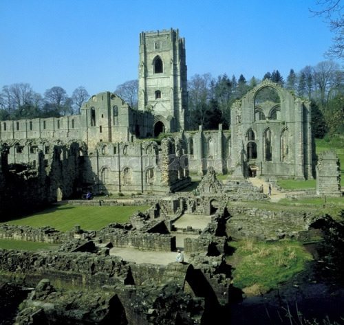 ノース・ヨークシャーのほぼ中央にあるリポンの町。そこにスタッドリー王立公園がある。英国の庭園は自然を生かしたものが多いが、ここは自然を生かしつつ、神話の幻想性を付け加えた庭園である。その中に違和感なく溶けこんでいるのが、ファウンティシズ修道院遺跡である。何不自由なく暮らせる修道院を離れ、聖ベネディクトの教えを忠実に守り、質素で素朴な生活をしようと考えた13人の修道士たちによって、ファウンティンズ修道院は、12世紀半ばに建てられた。