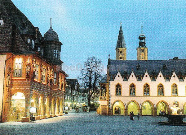 ゴスラーの繁栄の証は、中心部のマルクト広場に面して建つ、15世紀のギルド会館や市庁舎にみることができる。ギルド会館は建物外壁の窓と窓の間に、皇帝の像が配されていることから、「カイザー・ヴォルト」とも呼ばれる。また、マルク卜広場から北に少し行くとある、ロマネスク様式のノイヴェルク聖堂は、1186年に建造された。当時の代表的な建築物で、ゴスラーに数多くあった聖堂・礼拝堂の中でいちばん素晴しいものだといわれている。出所:世界遺産の旅