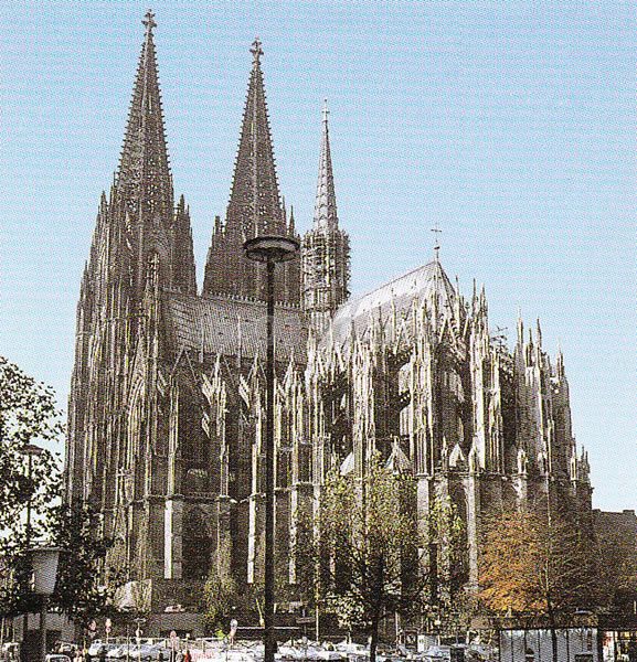 ケルンの歴史は、紀元50年のローマ帝国のアグリッピナ植民都市にまで、 さかのぼることができる。このケルンの町の中央駅すぐそばに建つ大聖堂は、完成まで632年もの歳月を費やしている。カロリング朝時代に建てられた素朴な聖堂が、火災で失われ、再建されたものの、新たに大規模なものに建て直されることになった。その新しい聖堂がケルン大聖堂だ。