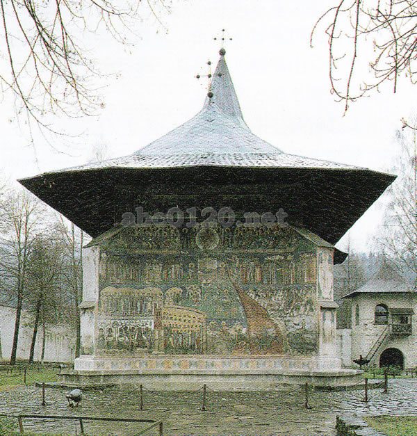 この地方の修道院は、内壁も外壁もフレスコ画で、埋め尽くされていることが特徴。聖書を題材にしたフレスコ画は、文字の読めない人びとに、絵で聖書を理解してもらう役目も果たしていた。スチャヴァ奏「外の山奥に点在する、スチャヴァ、ヴォロネツ、モルドヴィツァ、フモール、アルボレ、パトラウツィ、プロボタの7修道院が、世界遺産として登録されている。出所:世界遺産の旅