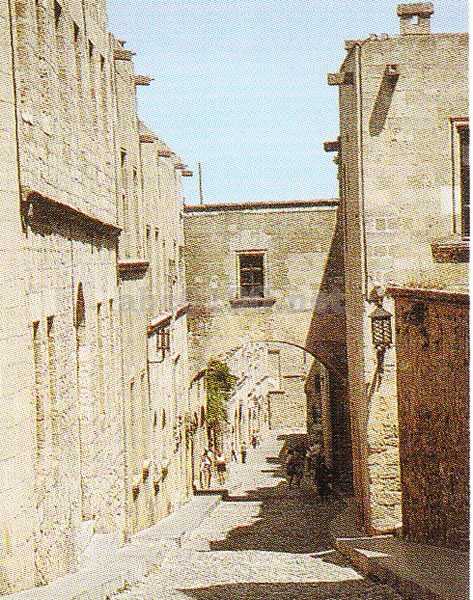 紀元前2世紀には、地中海一の貿易都市だったが、ローマに征服されて衰亡。この島に再び繁栄をもたらしたのが「ヨハネ騎士団」だった。ヨハネ騎は団とは、聖地エルサレムで巡礼者の看護などの医療活動をする信徒団が前身で、十字軍の時代に騎士修道会に変貌した。13世紀にイスラム軍に追われキプロス島、さらに1309年にロードス島へと拠点を移した。この騎士団が壕をめぐらした城壁を築き、宮殿や各語族ごとの館などを建築した。宮殿はその性質上、質実剛健、要塞風である。当時の施療院だった建物が、現在考古学博物館となっている。出所:世界遺産の旅