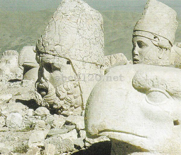 標高2150mのネムルト山頂に、さらに砕石を高さ50m、直径150mの円錐形に積み上げたトゥムルス(墳墓)がある。その東西には高さ10mもある首のない石像が5体ずつ、下のテラスには石像から転げ落ちた大理石の首が無造作に並び、太陽を浴びて白く幻惑的に輝いている。紀元前2~前1世紀頃にこの地域に栄えたコマゲネ王国アンティオコス1世の祭祀所である。