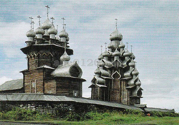 カレリヤ地方のオネガ湖は、針葉樹林の美しい湖沼地帯である。このオネガ湖に浮かぶキジ島は、人びとの憩いの場としてだけでなく、ノヴゴロドと白海を結ぶ交通の要衝として古くから栄えてきた。島の北側には、1714年に建てられた、22の玉葱形円蓋をもつ木造のプレオブラジェンスカヤ聖堂が建っている。南側には、ポクロフスカヤ聖堂があり、こちらは1764年の建造。この2つの聖堂を結ぶために、八角形平面の鐘楼がつくられた。このユニークな木造建築群はフォルム、構造が美しいというだけでなく、釘を一本も使っていないという点で驚嘆すべきものだ。鋸と鑿、錐だけで木材を精緻に組みあげたキジ島の建築職人たちの技術の高さは、ロシアじゅうに広まった。近年、老朽化が進み保存対策が望まれている。出所:世界遺産の旅