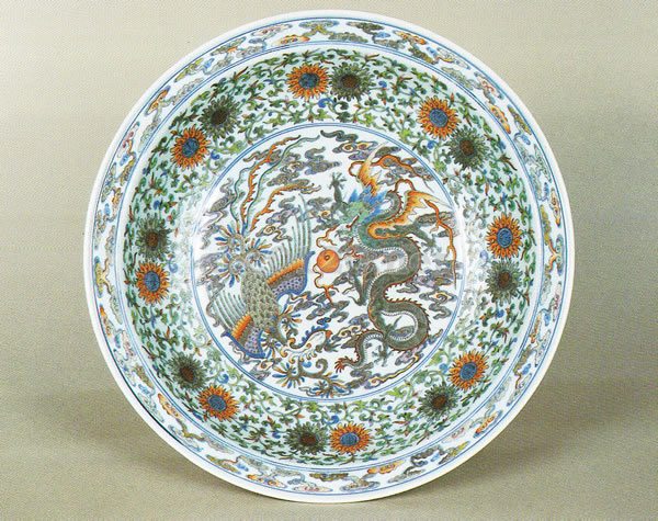 明・清|陶磁器|>豆彩龍鳳文盤 |