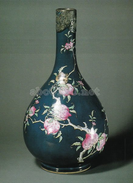 藍釉粉彩桃樹文瓶 2009年5月25日更新