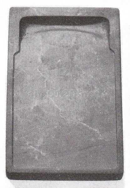 長方硯の墨池部が少し狭くなり、碗縁が厚く門の字様になるものをいう。