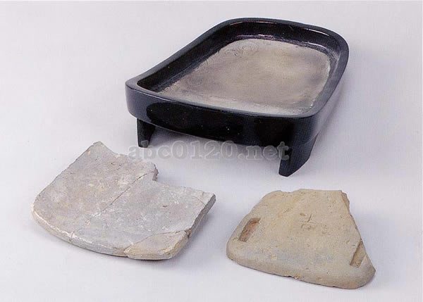 瓢箪形(葫蘆)で大円の前方に小門を重ねた形で、猿の額の狭い顔のような形の硯である。箕形硯からの変化と考えられる。日本の平安期と思われるものに古例がある。出所:『文房古玩事典』宇野雪村 関連用語: