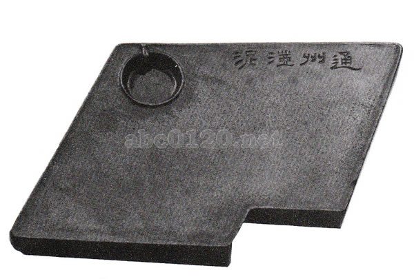 磬は古代の楽器、への字形にした薄い硬度の高い石を先端を中央にし、小から大へと組み合わせたもので、鐘(組み合わせたものを編鐘といい、音階的に並べる)と同じ打楽器である。この磬を模した硯である。出所:『文房古玩事典』宇野雪村 関連用語: