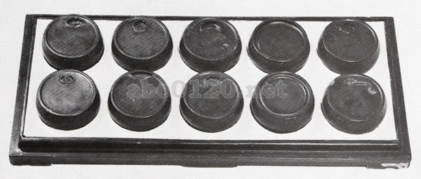 太鼓形に作り、石鼓文の文字を刻した十硯がセットになっている。端渓石のものは少ない。周の石鼓文の文字を縮墓して硯背に刻したものがある。阮元、張廷済蔵の二種は有名であり、他にも類例がある。これも石鼓硯と呼んでいる。出所:『文房古玩事典』宇野雪村 関連用語: