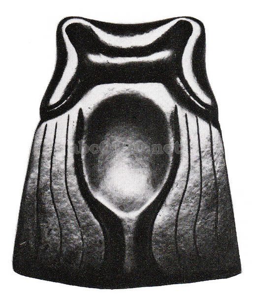 蝉は長い間地中にいて夏の朝、木に上って脱皮して蝉となり鳴く。地中から再生すると考えた古代人は死者の口に蝉形の玉を含ませて葬った。琀と言う。蝉は再生すると信じた古代人の思いが蝉形にこめられている。蝉様硯はその表現である。出所:『文房古玩事典』宇野雪村 関連用語: