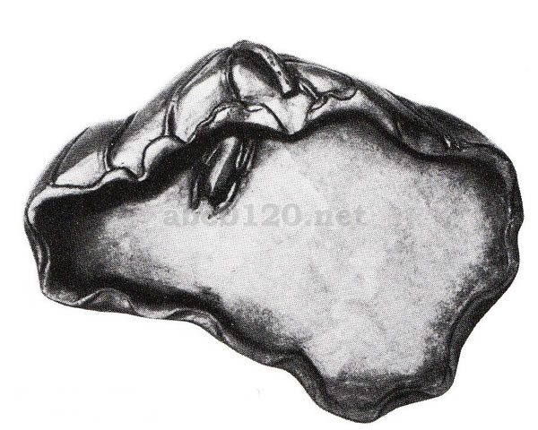 蓮の葉にかたどる。蓮葉硯という人もある。葉の上に蟹、蛙、その他の小動物を刻していることがある。出所:『文房古玩事典』宇野雪村 関連用語: