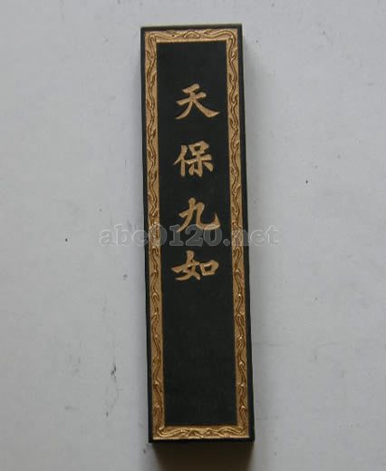 とあるものを絵図として表に現し、裏にこの詩を書いている。程君房、方于魯等明墨に多く、円形である。程君房には五彩墨の作例がある。乾隆御墨にも作られている。墨名として著名であり、現代墨にもあり長方形になっている。出所:『文房古玩事典』宇野雪村