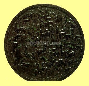群駿図である。名称に百のつくものは多いが百は多数を象徴するもので図絵に百を描くとは限らない。程君房に百馬図、方于魯に百子駿がある。これを受けた部の程・方二氏の墨が先行するものであろう。出所:『文房古玩事典』宇野雪村 関連用語: