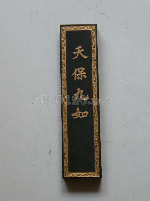 荷花形。 一一・二×一一二センチの中形。図は明墨の「天保九如」と同じである。裏面の文字の入れ方も同形式である。出所:『文房古玩事典』宇野雪村 関連用語: