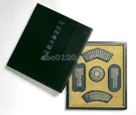 明の嘉清年代のと中山が「集錦墨」というセット墨を作ったが、清代になって盛んになったもので前記の汪近型の中形御墨の「名華十友」などその例であり、小形の墨で漆匣に収めた一連の墨を挙げてみる。