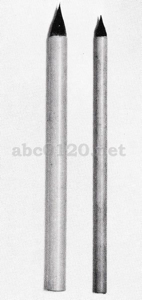 形による、鋒の大さ、長さ、筆管の形なども関連して毫の形だけとは限らない。雀頭筆 は蕪のように急に先が細くなっている。出所:『文房古玩事典』宇野雪村 関連用語: