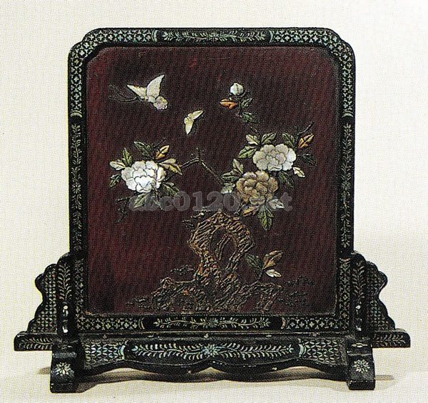 堆朱、堆黒のものは一民豪華である。中には陶板をはめこんだものもある。華麗で渋味のある青貝螺鈿のものがある。明代のものは漆に細かな皺裂があって経年の重さが沈んでいる。出所:『文房古玩事典』宇野雪村 関連用語: