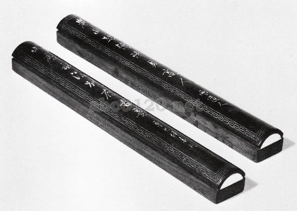 しんに鉛などを入れて重くしている。象牙その他の象嵌をし、殷・周青銅器、銘文、能筆家の対聯書などを刻して象嵌した対のものがあったりする。