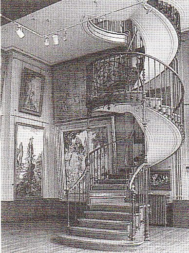 三階から四階にのぼるらせん階段は木造りでギーギーと音をたてそうに古めかしい。四階には二つ部屋があり、ここも壁が見えないほどに絵が掛けられている。正面に「ユピテルとセメレ」がある。真っ青なバックに宝石のように細かく輝く美しい絵に、 息をのんで立ち止まった。隅々にまで神経が行き届き、気が遠くなりそうな装飾の細密描写には、インドや中近東を感じさせるものがある。次の部屋の「踊るサロメ」は未完成だけに、かえって制作上の苦心がわかって興味深い。三角獣」はアラビア風の作品であるが、この美術館の中で色彩の一番美しいものだ。