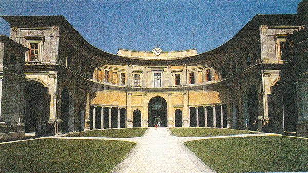 建物は十六世紀半ばの教皇ユリウス三世(イタリア名ジュリオ三世)の別宅として用いられた。三階建てで奥に深く、中庭を挟んで左右に平行して回廊形に延びている。