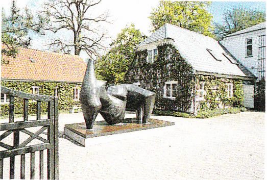 門を入ると、田舎の家のようなたたずまいの建物があり、前庭にはヘンリー・ムアの作品が二体置かれている。ここが一番初めの建物でここを中心に左右にモダンな回廊や展示室が延び、海の近くのレストランで合流するようになっている。海に向かって広い芝生の庭があり、その景観を損なわないために、一部は地下を利用した大きな展示室と回廊になっており、雨の日でも建物の中を一周できる。また、地七の回廊もガラス窓を大きくとってあり、庭の自然と一体感がある。といっても、”囲まれた美術館”という感じではなく、自然の緑の中で美術品を見る雰囲気がここにはある。