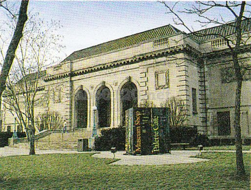 コロンバス美術館は一八七八年に創立された、オハイオ州で一番古い美術館である。建物は石造りの二階建てで、イースト・ブロード通りに面した正面玄関は堂々としていて立派である。前庭に大きなヘンリー・ムアのブロンズ像があり、建物のまわりにもいくつか彫刻が置かれている。入口は正面玄関の真うしろにあり、こちらはネオンライトのオブジェが壁に取り付けられ、彫刻もカルダーの大きい作品が置いてあり、正面とは異なって近代的な雰囲気である。ここに大きい来客用の駐車場がある。入口を通るとすぐロビーで右側に案内カウンターがある。特別展以外の常設展は無料である。