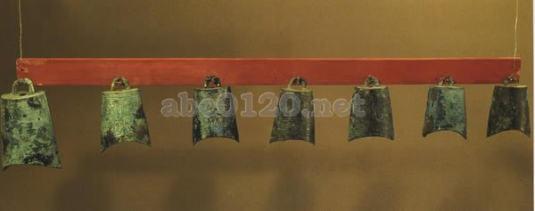 鈴は古代の楽器である。常に車や旗に付けられ、馬にも吊される。 この鈴の舞には環状の鈕が付き、孔が開いている。中に舌を吊下げ、振って音を鳴らす。出所:中国陝西省宝鶏市周原文物展