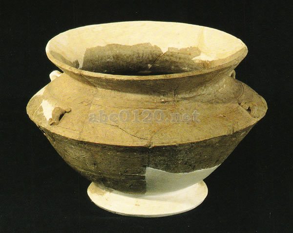 この尊は餈器としては早い時期の例である。色は黄褐色を呈し、口が広がり、肩は鋭角に張る。肩には二つのアーチ形の耳が付き、弦紋で飾られている。腹部はややふくらむ。 この餈尊は餈器製作と使用の淵源を探る上で貴重である。出所:中国陝西省宝鶏市周原文物展