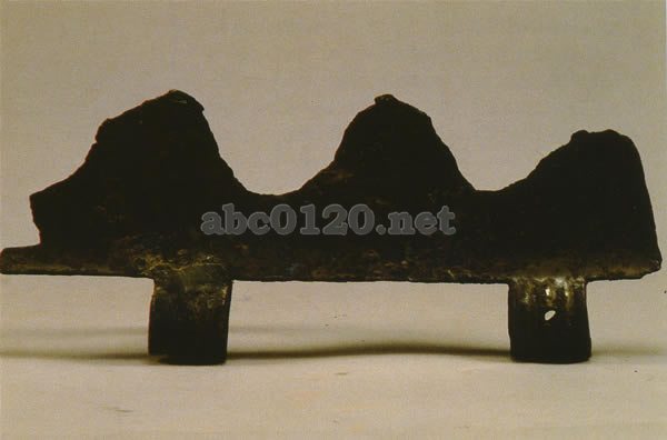 この我は荘白村の伯とう墓から出土した。銅製の武器であり、甲骨文に我の字は「找」の形で書かれている。三つの刃部が並び、形が「我」の字に似ていることから名がつけられている。三つの刃がほこ先となり、背には二つの楕円形の孔があり、柄をとりつけることができる。 また、柄を付ける部分(内)には細長い孔(穿)があり、縄を通してしっかり縛りつけるようになっている。出所:中国陝西省宝鶏市周原文物展