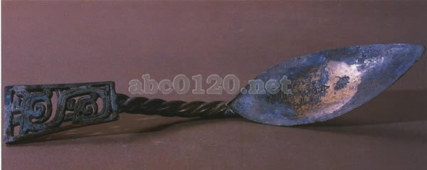 このヒは、(疒+興)簋と同じ穴から発見された。 匕は食物を取りわける道具である。この匕の柄は紐状てへ柄頭は梯子形に孔のあいた握りになり、透し彫りの双頭の獣紋が飾られている。勺の先は尖り、これですくったり飲んだりすることができる。勺には銘が見られる。出所:中国陝西省宝鶏市周原文物展